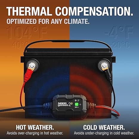 El GENIUS2D ahora cuenta con un sensor térmico integrado que monitorea y ajusta automáticamente el ciclo de carga según las fluctuaciones de la temperatura ambiente, lo que le permite proporcionar una carga más precisa tanto en climas cálidos como fríos. No solo mejora el rendimiento de la carga, sino que también prolonga la vida útil de la batería al limitar el impacto de la subcarga o la sobrecarga causadas por los cambios de temperatura. Así, al cargar a bajas temperaturas, la velocidad de carga aumenta, y al cargar a temperaturas más altas, disminuye. El resultado: baterías de mejor calidad, más precisas y completamente cargadas.
