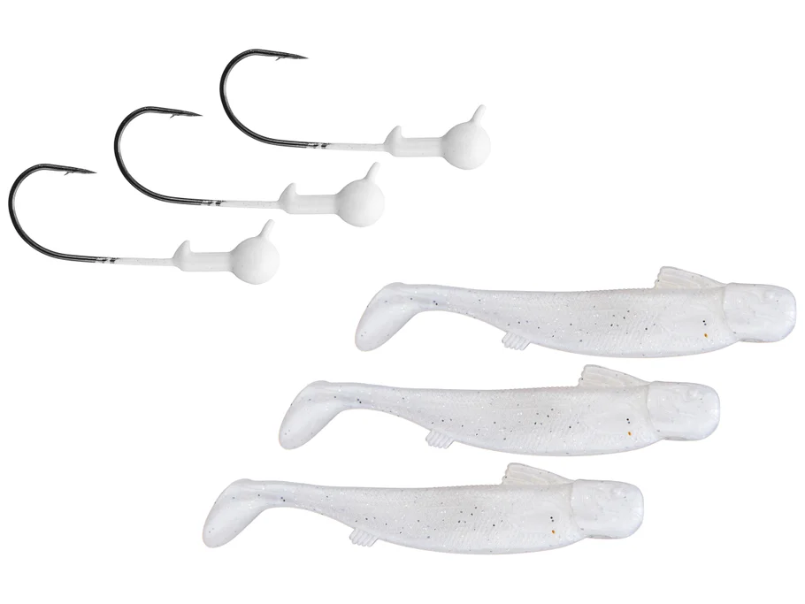 Perfecto para los estados donde solo se permiten tres anzuelos por aparejo, el aparejo Yumbrella de 3 hilos de Yum cuenta con tres brazos Super Wire de acero inoxidable, sometidos a repetidos tratamientos térmicos para ofrecer una resistencia y una memoria inigualables. Un acoplador moldeado proporciona una resistencia y durabilidad excepcionales, asegurando que los brazos de alambre nunca se suelten. La cabeza presenta un acabado increíblemente realista, y los broches y eslabones giratorios de alta calidad garantizan un rendimiento impecable. El aparejo Yumbrella de 3 hilos también incluye tres Yum Mud Minnows de 10 cm (4″), así como tres cabezas plomadas de 3 g (1/8 oz) con anzuelos 3/0 superafilados. Una forma letal de capturar lubinas, róbalos y otras especies de pesca deportiva, el aparejo Yumbrella de 3 hilos de Yum simula un pequeño banco de peces carnada y ha demostrado su eficacia en la pesca de costa a costa.