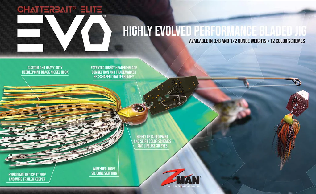 Siempre en la cúspide de los jigs de bajo con cuchillas, Z-Man ha renovado su estatus de líder una vez más con el ChatterBait Elite EVO totalmente potenciado. Construido con mejoras al máximo, el EVO es un jig con cuchillas de siguiente nivel construido con ADN de captura de bajos altamente evolucionado. Un anzuelo hecho a medida y refinado según las especificaciones profesionales, una configuración de sujeción del remolque fácil de usar, un faldón de silicona atado con alambre, un acabado de hoja duradero y una cabeza especialmente esculpida son solo algunas de sus mejoras de nivel profesional que dan como resultado un cebo con calidad de torneo con una acción de caza radical e impredecible incomparable con otras plantillas vibratorias.